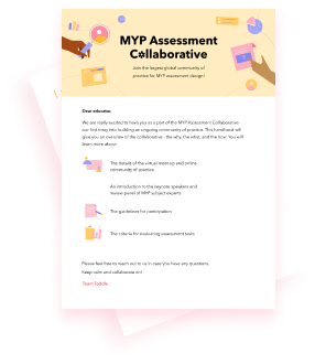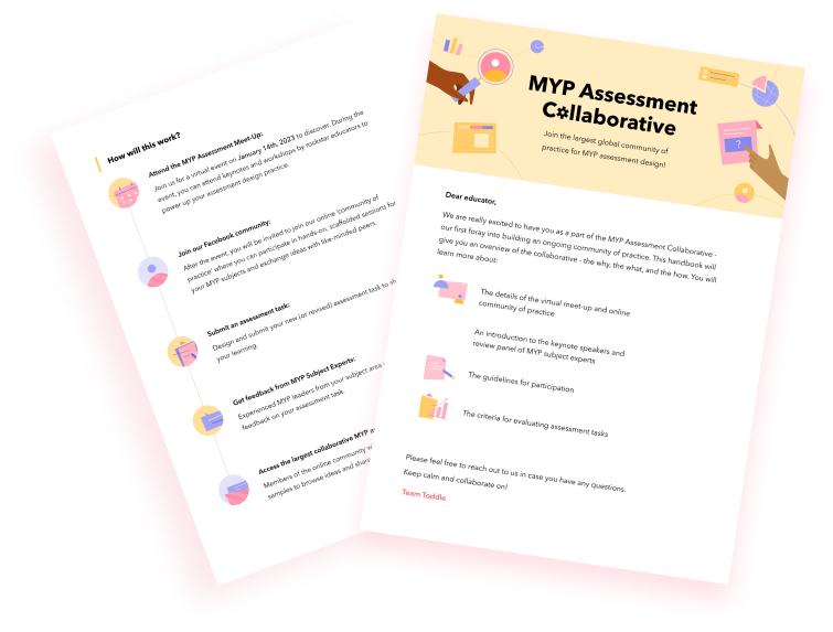 MYP Assessment Collaborative is a community initiative by Toddle. We, at Toddle, are committed to supporting educators with best-in-class learning opportunities that are designed to encourage teacher agency. Toddle is an all-in-one teaching-learning platform for schools following the IB or progressive frameworks and is used by 40,000+ teachers around the world. Toddle empowers teachers to work together and better for curriculum planning, student portfolios, assessments, reports, and family communication - all from one intuitive interface!